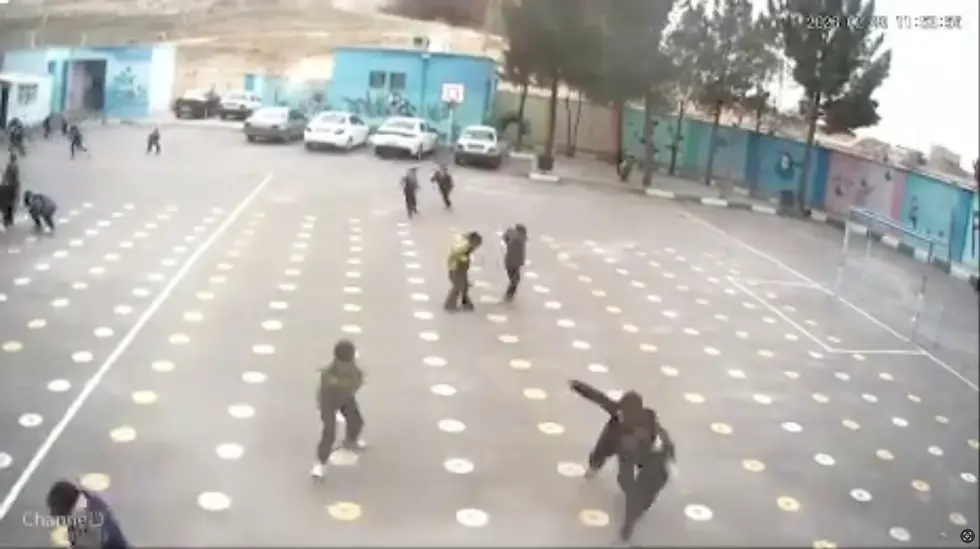 At the Imam Reza Elementary School for boys in Abyek, a small city in the Qazvin Province, west of Tehran, security camera footage from Feb. 28 shows scenes from an ordinary morning. Some 40 boys play on the playground.